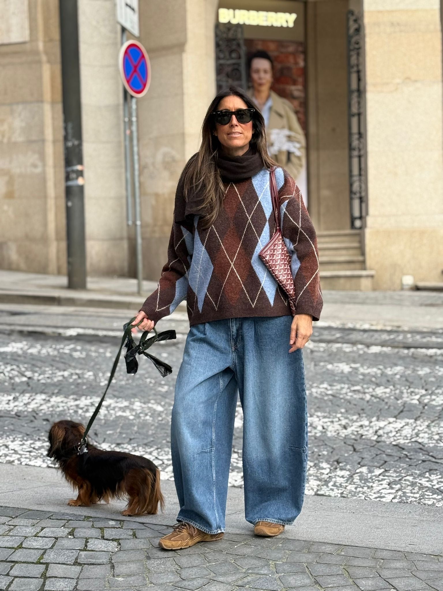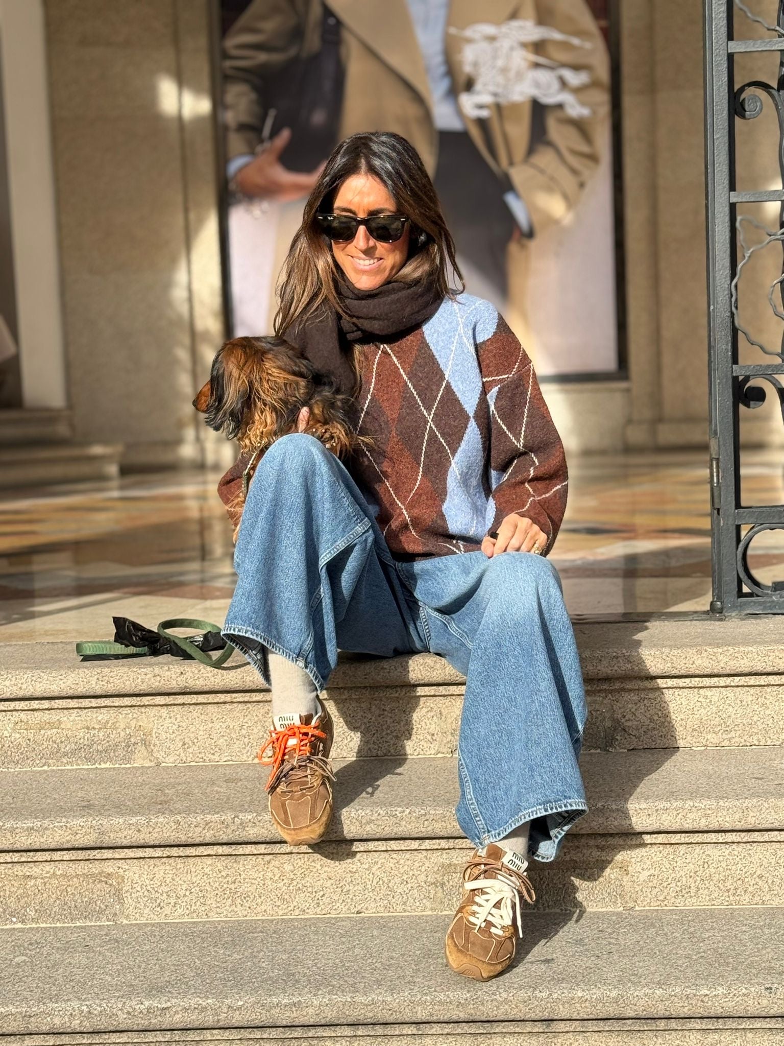 Camisola losangos cafe com azul
